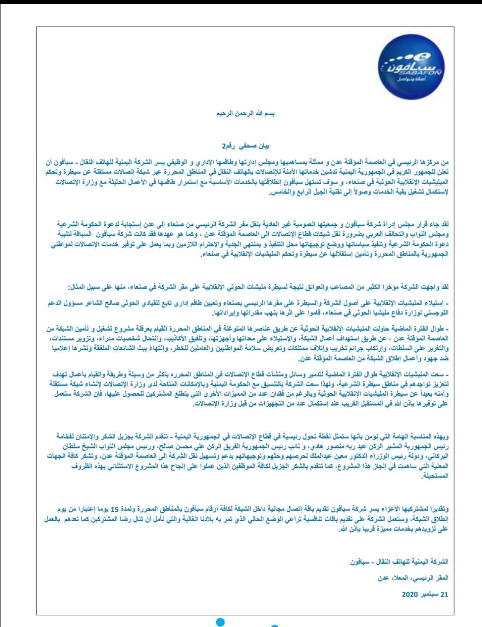 عاجل سبافون تعلن انطلاقه جديده من عدن ..تفاصيل وبيان خاص أعلنت شركة سبافون عن انطلاقه جديده لها من عدن كأول شركه محليه للهاتف النقال خارج سلطة المليشيات الحوثيه منذ انقلاب ٢٠١٤ .وأعلنت الشركه في بيان رسمي