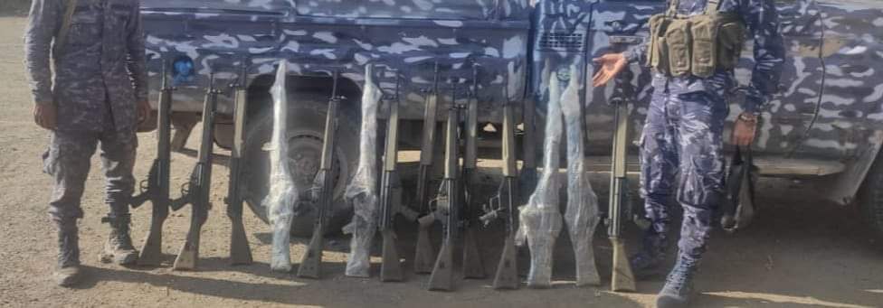ضبط أفراد شرطة الدوريات وأمن الطرق في تعز المرابطون في نقطة الأقروض صباح اليوم شحنة من الأسلحة المهربة على متن إحدى الشاحنات في طريقها باتجاه مليشيا الخوثي.