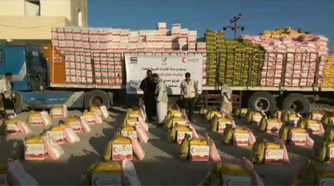 سيرت هئية الهلال الأحمر الإماراتي قافلة مساعدات غذائية إلى أهالي مديرية جردان في محافظة شبوة تحوي 85 طنًا و600 كيلو غرام من المواد الغذائية المتنوعة.