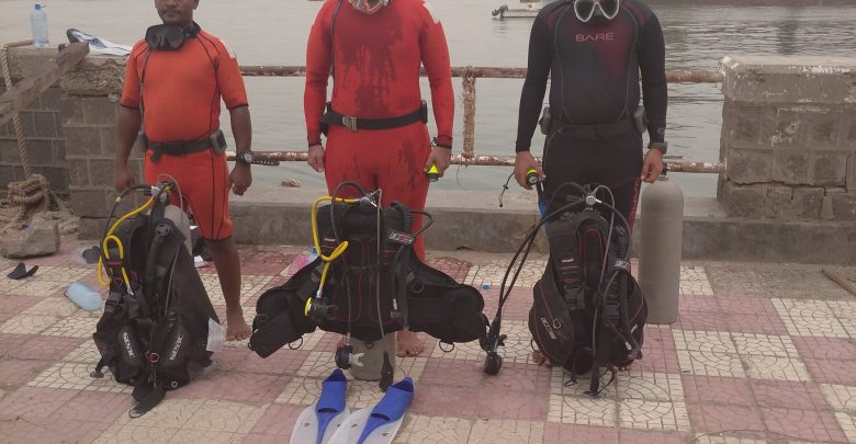 غواصة العمالقة تنتشل جثة طفل وطفلة غرقا في ساحل العشاق بعدن