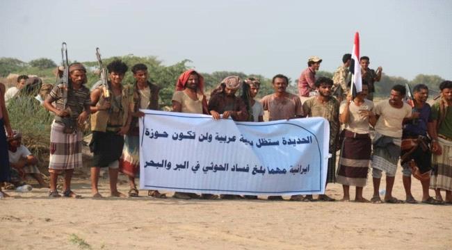 شهدت الخوخة، عاصمة محافظة الحديدة المحررة، صباح الثلاثاء، تظاهرة حاشدة للتنديد بجرائم مليشيا الحوثي، الذراع الإيرانية في اليمن،
