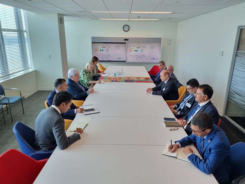 التقى الرئيس الدكتور رشاد محمد العليمي، رئيس مجلس القيادة الرئاسي اليوم الاثنين بنيويورك، وكيل الامين العام للامم المتحدة للشؤون الانسانية مارتن جريفيث، على هامش اجتماعات الدورة السابعة