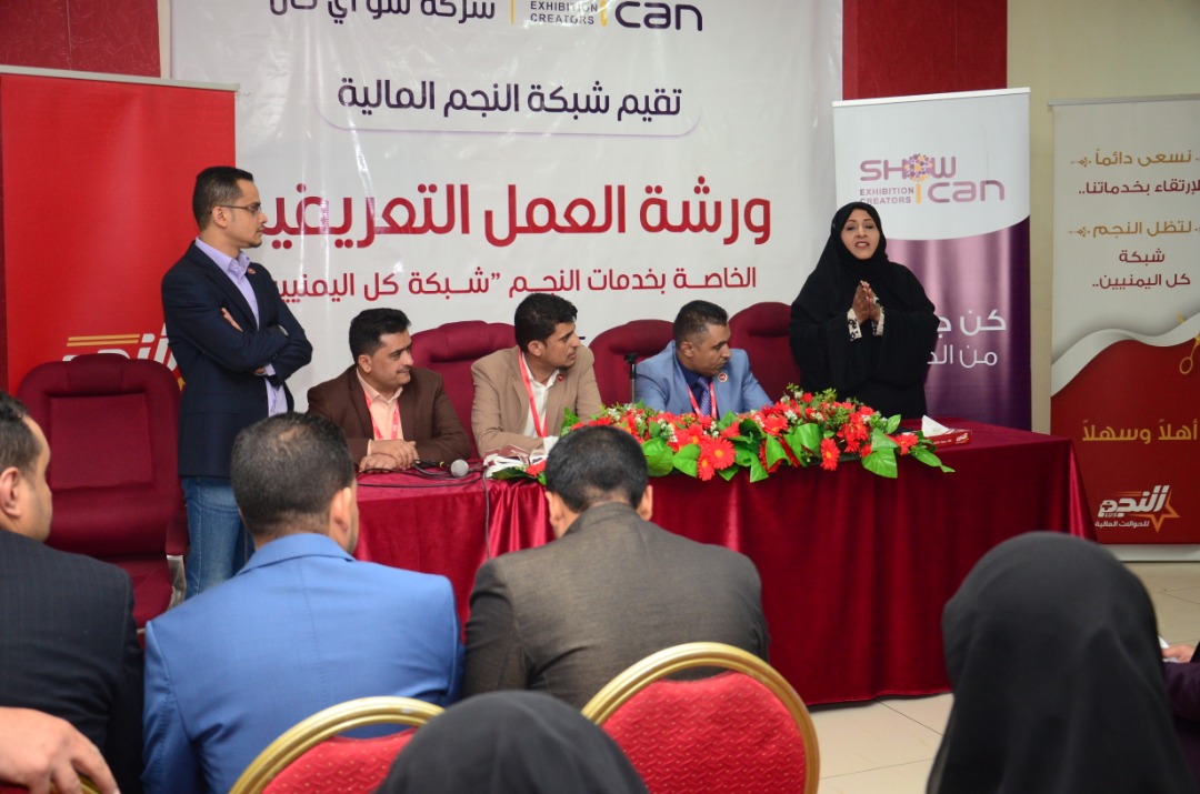 نظمت، شبكة النجم للحوالات المالية؛ بالتعاون مع شركة شو آي كان، اليوم الأحد، ورشة عمل تعريفية حول أداء الشركة، ودورها في العمل المجتمعي ودعم المشاريع الصغيرة، بالعاصمة صنعاء.وهدفت الورشة، التي أقيمت بحضور، رئيس