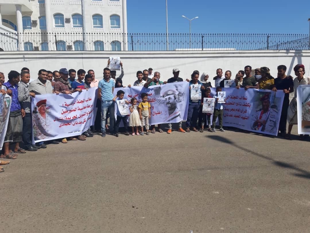 وقفة احتجاجية امام مكتب النائب العام بعدن تطالب باستدعاء أدوات التحريض ضد الشهيد/عدنان الحمادي- بيان وصور