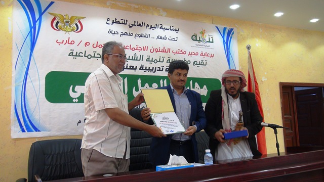 مؤسسة تنمية الشبابية الاجتماعية تكرم مدير مكتب الشئون الاجتماعية والعمل م / مأرب
