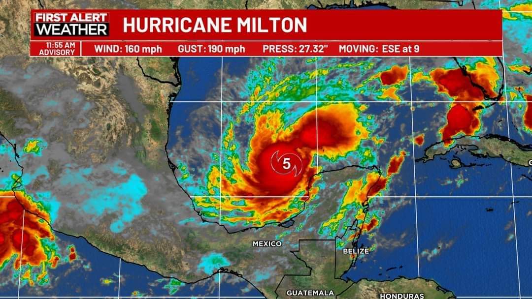ترصد صور الأقمار الصناعية في مركز طقس العرب عين الإعصار ميلتون، التي قد تبدو صغيرةً بعض الشيء من خلال صور الأقمار، لكن من خلال أنظمة القياس عن بُعد، فإن مساحة عين الإعصار تصل إلى