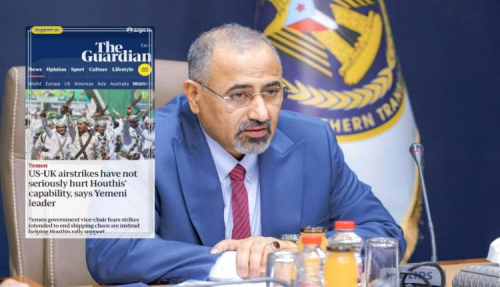 الرئيس الزبيدي يصرح لـ "صحيفة الجارديان البريطانية"صرح رئيس المجلس الانتقالي الجنوبي وعضو مجلس القيادة الرئاسي، عيدروس الزبيدي، بأن الضربات الجوية الأمريكية والبريطانية في اليمن، التي تهدف إلى إنهاء