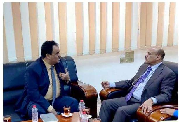 بحث محافظ البنك المركزي اليمني أحمد غالب المعبقي اليوم مع الدكتور صالح الجريري مدير عام شركة النفط بالعاصمة عدن آلية توريد الأموال إلى البنك المركزي وتفعيل الحسابات المالية السابقة لشركة النفط