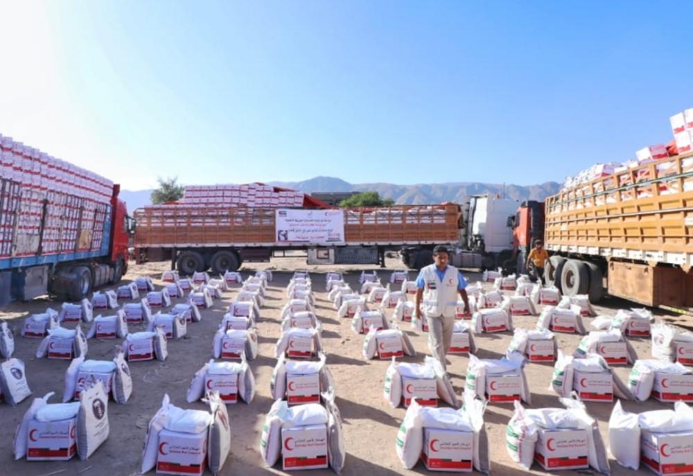 سير الهلال الأحمر الاماراتي قوافل المساعدات الإنسانية والغذائية العاجلة للأسر ذات الدخل المحدود في عدد من مديريات بيحان المحررة بمحتفظة شبوة .