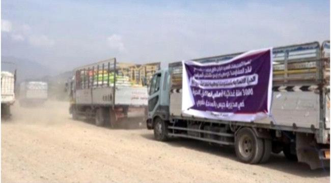 دشنت الخلية الإنسانية للمقاومة الوطنية، توزيع 3000 سلة غذائية متنوعة لأهالي المناطق المحررة في مديرية حيس، كمرحلة اولى من مشروع قافلة