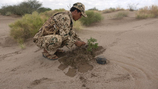 تواصل هندسة القوات المشتركة العمل بدأب في تطهير حقل ألغام فردية محرمة دوليا من مخلفات المليشيات الحوثية جنوب الحديدة غربي اليمن، مع زراعة شتلات أشجار مكانها في رسالة إنسانية للأمم المتحدة والمنظمات الدولية