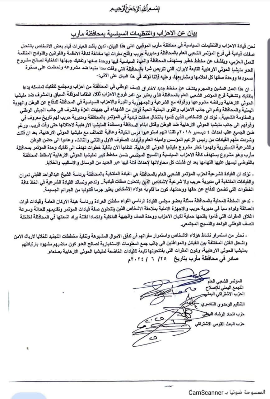 الاربعاء 26 يونيو 2024 دانت قيادة الاحزاب والتنظيمات السياسية في محافظة مأرب قيام بعض الاشخاص بانتخال صفات قيادية في فرع المؤتمر الشعبي العام بالمحافظة ومديرية حريب وفتح مقرات لها مخالفة لكافة الانظمة والقوانين