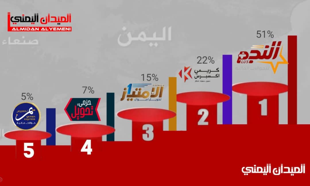 الميدان اليمني | خاص. أظهرت نتائج استبيان رأي نشرته شبكة الميدان اليمني على عدد من منافذها الإخبارية بمنصة تليجرام تضم نحو 200k مشترك من جميع المحافظات اليمنية تربع شبكة النجم للحوالات المالية على قمة هرم سوق