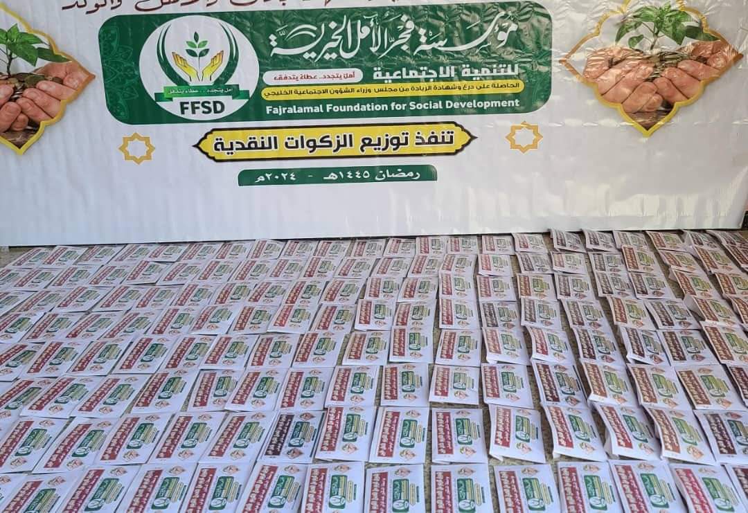 خاص ...تعزضمن مشاريعها الرمضانية وبدعم من فاعلي خير نفذت مؤسسة فجر الامل الخيرية للتنمية الاجتماعية توزيع 40.000.000 زكوات نقدية وزعتها على الاسر الفقيرة والمحتاجة في عدد من احياء مدينة تعز وعدد من قرى