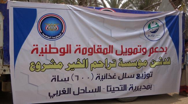 وزعت مؤسسة تراحم الخير، اليوم الجمعة، 600 سلة غذائية على أعداد من الأسر الفقيرة والمعدمة، في مديرية التحيتا جنوب محافظة الحديدة غربي