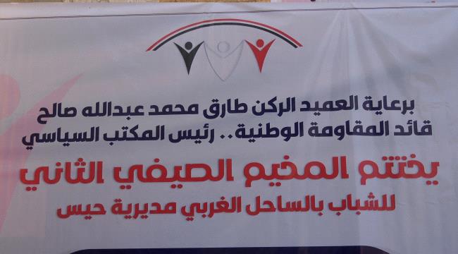 اُختتم المخيم الصيفي الثاني في مديرية الخوخة جنوب محافظة الحديدة غربي البلاد، بعد 15 يوماً من انطلاقه بدعم من قائد المقاومة الوطنية ورئيس مكتبها السياسي العميد طارق محمد عبدالله صالح.