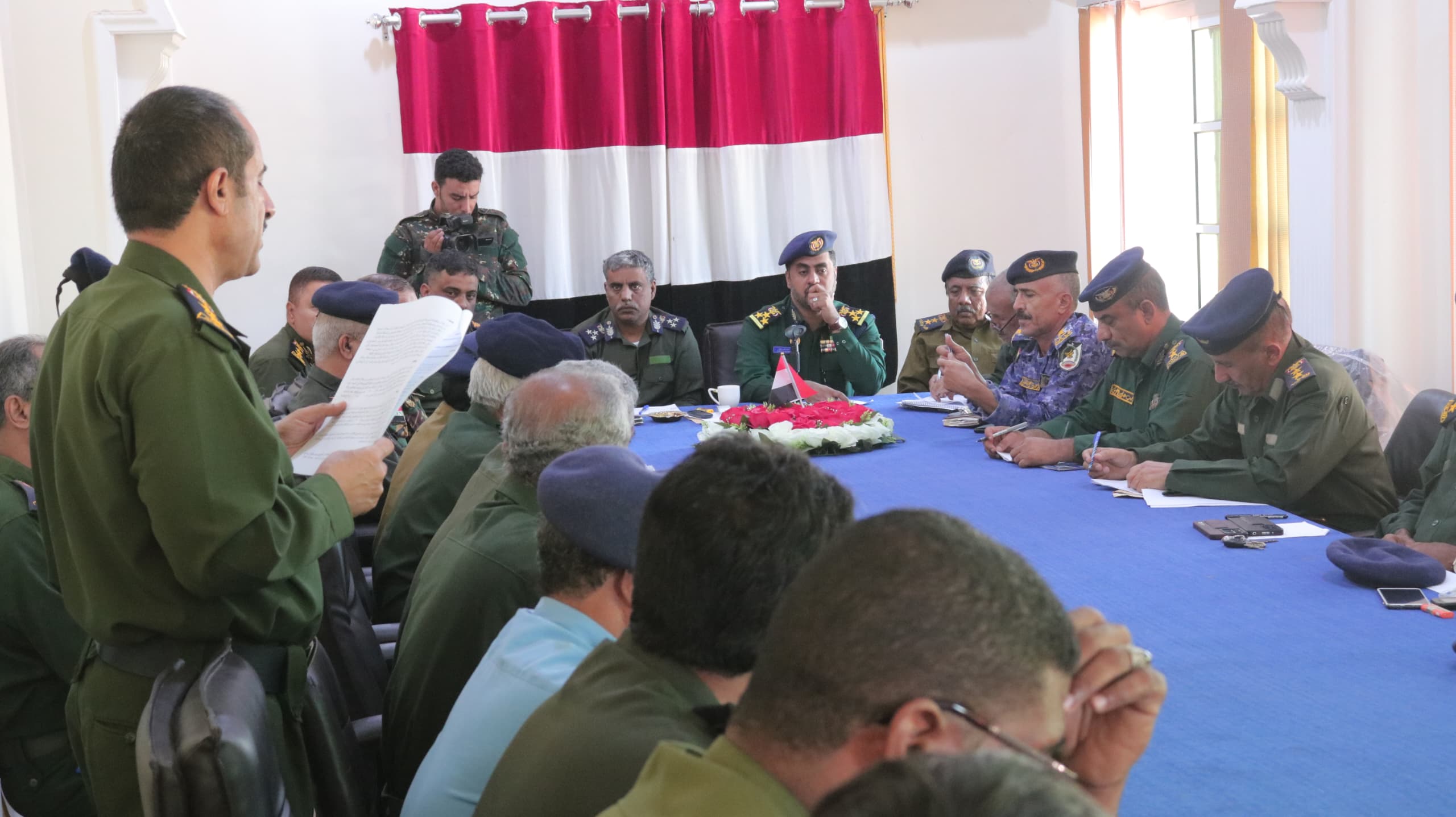 المهرة اجلس في قاعات الاجتماعات في إدارة الأمن الخاص باجتماع اليوم لقادة الوحدات الأمنية حيث حرصت على الاهتمام ومدراء الأمن والمديريات والذى يستمر لفترة طويلة ويناقش تقارير الانجاز ليوم 2023 م ومناقشة مسار