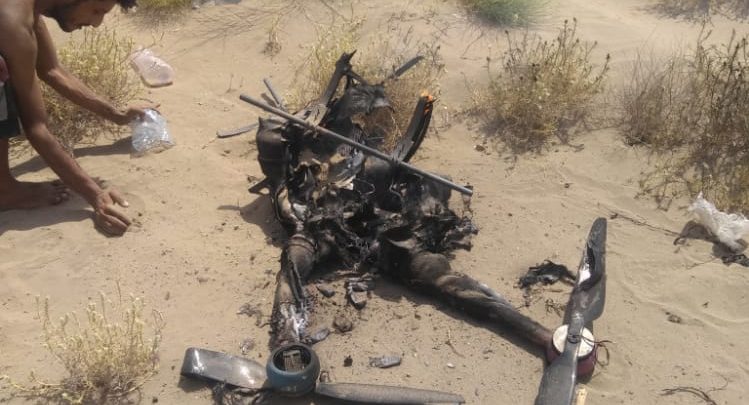 ووثق تصوير فيديو مسجل يظهر الطائرة المسيرة الحوثية التي اسقطتها القوات