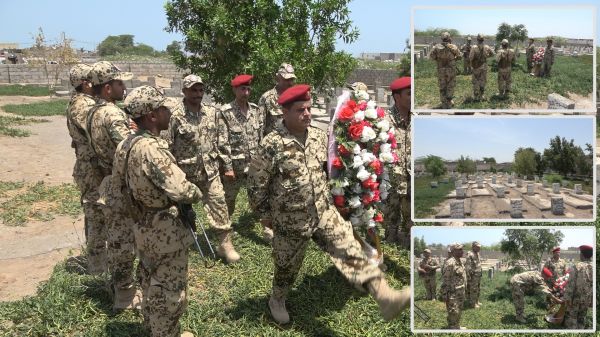 العميد عبدالرحمن نعمان رئيس عمليات المقاومة الوطنية أكد خلال زيارة فردوس شهداء حراس الجمهورية أن دمائهم الزكية التي صنعت الانتصارات العظيمة في الساحل الغربي لن تذهب هدرا "وعلى خطاهم ماضون بعزيمة لا تلين " |
