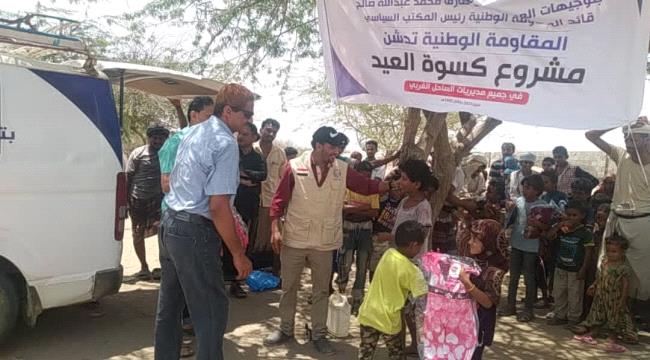 استقبل أهالي منطقة "المُسنا" في مديرية الحالي فرق الخلية الإنسانية للمقاومة الوطنية بحفاوة كبيرة، أثناء قدومها لتوزيع مشروع كسوة العيد