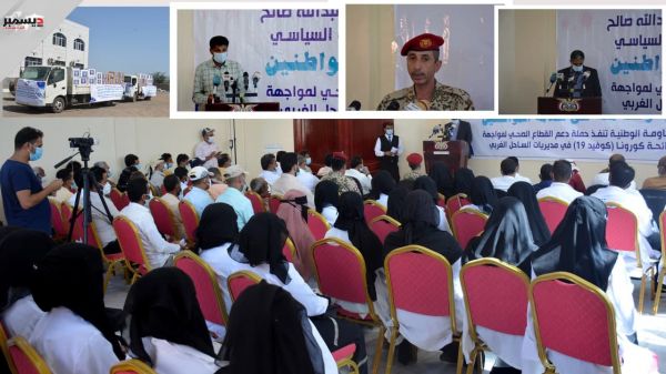دشنت المقاومة الوطنية، اليوم الخميس، حملة مواجهة وباء كورونا في مديريات الساحل الغربي، تنفيذا لتوجيهات قائد المقاومة رئيس المكتب السياسي العميد الركن طارق محمد عبدالله صالح، وذلك بتسليم السلطات المحلية والصحية