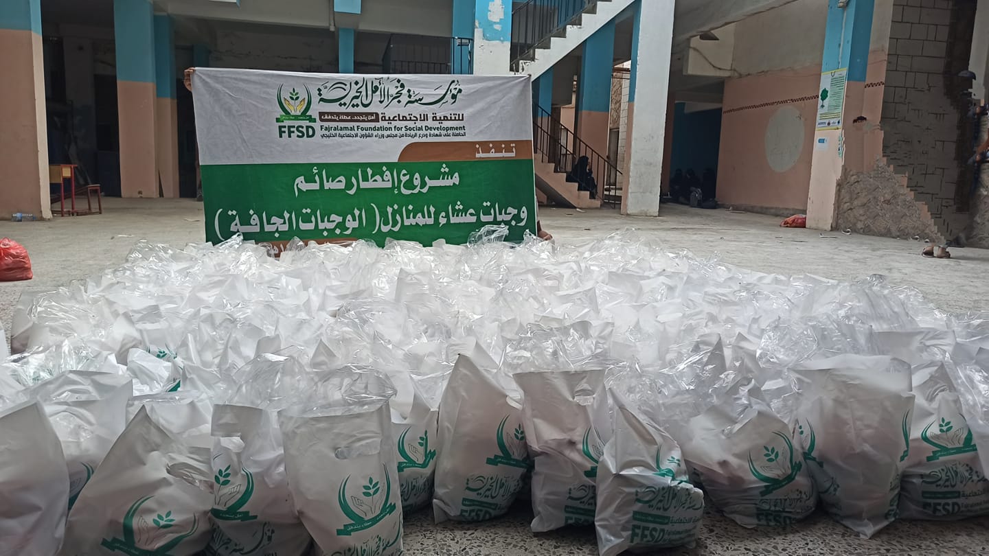 يمن اونلاين -خاص -تعز نفذت مؤسسة فجر الأمل الخيرية مشروع الوجبات المنزلية ( وجبات جافه ) بتمويل كريم من فاعلّي وفاعلات خير .وقال القائمون على المؤسسة أن المشروع يأتي ضمن المشاريع الرمضانية الذي تنفذها فجر