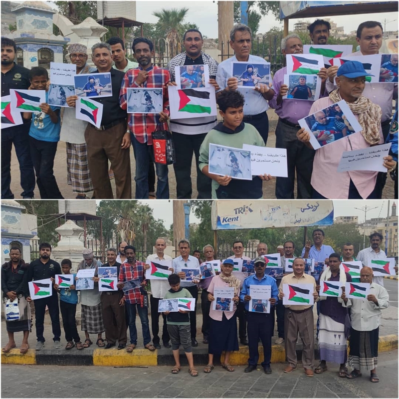 نفذ العشرات من الصحفيين والكتاب اليمنيين ظهر اليوم الخميس، في عدن، وقفة احتجاجية، للتنديد بالجرائم الوحشية التي يرتكبها الاحتلال الاسرائيلي بحق الشعب الفلسطيني في قطاع غزة وللتضامن مع مراسل قناة " الجزيرة