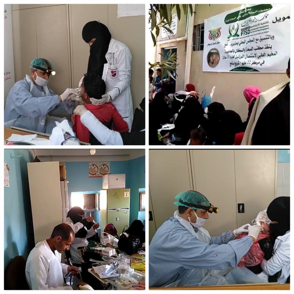 يمن اونلاين -تعز تحت شعار( تخفيف المعاناة والألم على المحتاجين) وبتمويل مؤسسة فجر الأمل الخيريه للتنمية الإجتماعية بالتنسيق مع المجلس المحلي بمديرية سامع نفذ فرع مكتب الصحه والسكان بالمديرية اليوم الخميس
