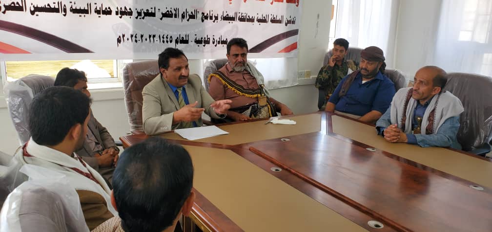 دشنت السلطة المحلية في محافظة البيضاء اليوم،برنامج الحزام الأخضر"لتعزيز جهود وحماية البيئة والتحسين الحضري للعام 1445ه-2023، 2024م.وتحت شعار ""كلنا شركاء في حماية البيئة وتحسين المدن"" يهدف برنامج الحزام