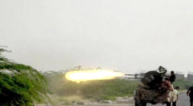 وقال سكان محليون، أن دبابة مليشيا الحوثي الإرهابية شنت قصفاً عشوائياً،
