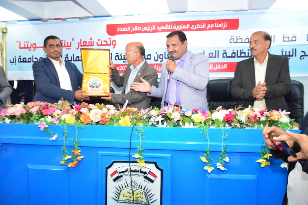 تزامنا مع الذكرى السنوية للشهيد الرئيس صالح الصماد وتدشين الأنشطة البيئية للعام الجامعي الجديد أقيم صباح اليوم إحتفالا تكريميا لجامعة إب وعدد من الجهات كأفضل بيئة وفقا للتقييم الذي نفذه برنامج البيئة والنظافة
