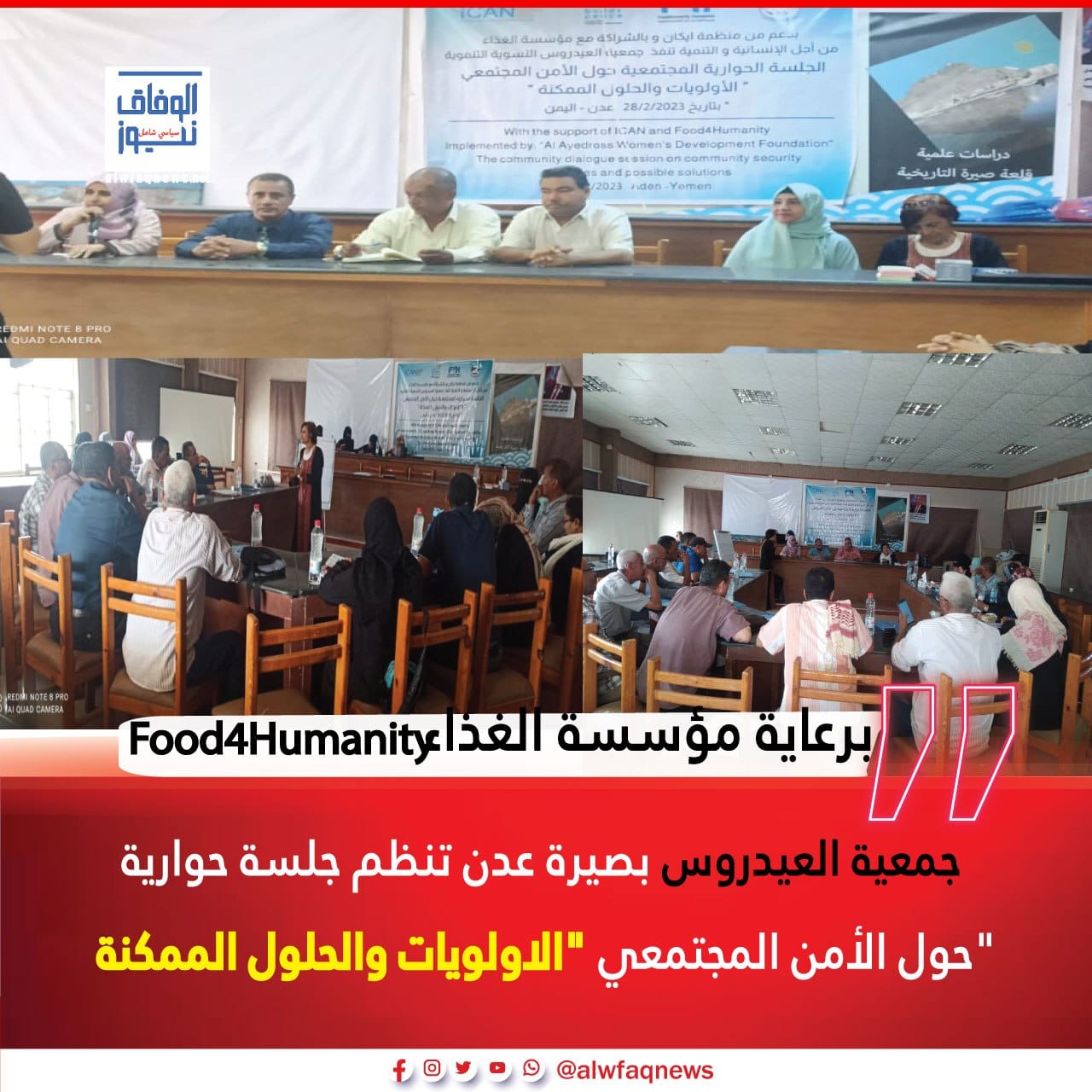 عدن _ خاص: تواصل مؤسسة الغذاء من اجل الانسانية Food4Humanity بالشراكة مع المنظمات المحلية خصوصا التي تقودها النساء فعاليات برامج الامن المجتمعي وحماية المجتمع من خلال تعزيز دور الوساطة المجتمعية لحل النزاعات، والحوار