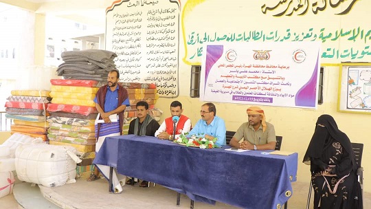 حنان الدغار ... المهرةدشنت جمعية الهلال الأحمر اليمني فرع المهرة مع مكتب التربية والتعليم بالمحافظة مشروع توزيع مواد الأيواء والنظافة الطبخ لسكنات المعلمين والطلاب في مديرية الغيضة ومديرية حوف.حفل زواج الأستاذ