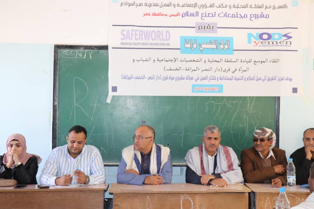يمان نيوز -بشرى الحميدي بحضور مدير مديرية صبر الموادم بمحافظة تعز محمد الكدهي أقام المركز المجتمعي في قراضة صباح اليوم السبت 5ديسمبر 2020 اللقاء الموسع لقيادة السلطة المحلية والشخصيات الإجتماعية والشباب