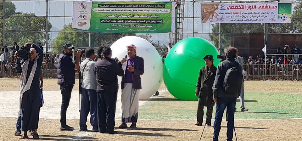 - احتفى نادي شعب إب الرياضي والثقافي اليوم بحصوله على لقب النادي الأكثر جماهيرية في اليمن حسب استفتاء بموقع الاتحاد الآسيوي لكرة القدم.- وبدأ الحفل بملعب الكبسي بالتزامن مع العيد الـ53 للاستقلال الـ 30 من نوفمبر،