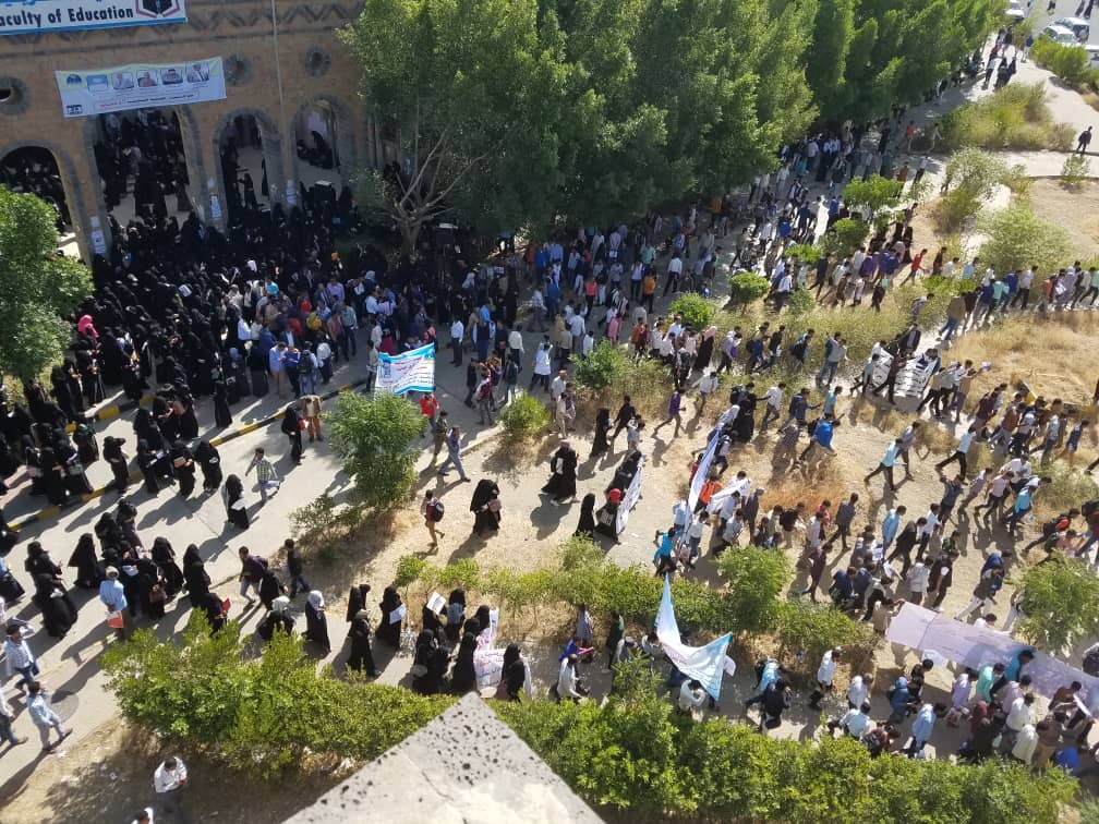 شهدت جامعة تعز، اليوم الاحد، وقفة احتجاجية بمناسبة الذكرى الثانية لجريمة محاولة إغتيال رئيس الجامعة الدكتور "محمد الشعبي" واستشهاد مرافقه الشخصي الشهيد "موفق الشميري.