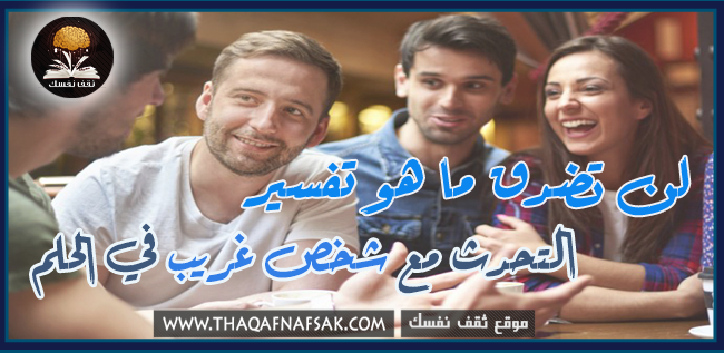 التحدث مع شخص غريب في الحلم بالتأكيد أنك حلمت ذات يوم ما بهذا الحلم فالتحدث في الحلم بصفة عامة في الحلم يعبر عن الرغبة في التواصل أو التعبير عن الذات. فهو إشارة إيجابية لك إذا كنت تحلم بالتواصل مع الأخرين.