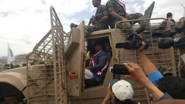 واستعرض الحوثيون يوم أمس بمدرعات وآليات عسكرية، زعموا أنه تم الاستيلاء عليها خلال المواجهات مع قوات التحالف.