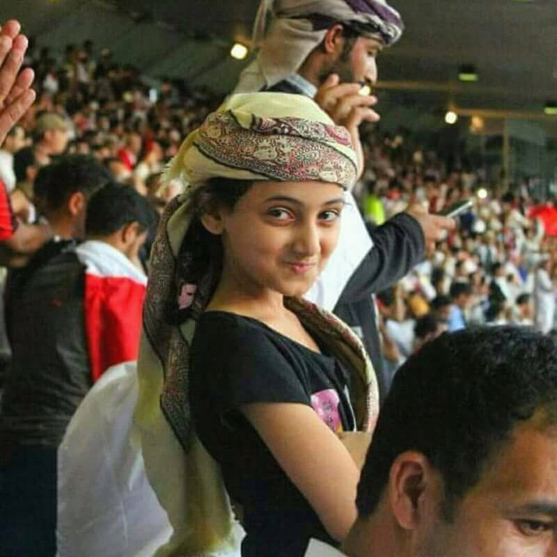 تداول ناشطون على مواقع التواصل الاجتماعي صورة لطفلة يمنية حضرت مساء الامس مع اسرتها لمساندة وتشجيع المنتخب اليمني للشباب في مدينة الدمام السعودية .