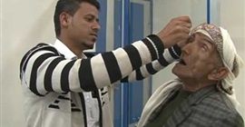 ويقدم الفريق الطبي خدمات مجانية في عمليات ازالة المياه البيضاء بالعين بالإضافة الى تركيب عدسات داخلية وتوزيع نظارات قراءة وأدوية مجانية ايضا