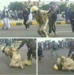 تداول نشطاء على مواقع التواصل الاجتماعي، صورا لقوات أمنية موالية للحوثيين وهو تقوم بإهانة قوات موالية للرئيس السابق علي عبدالله صالح، باشتباكات أمس الدامية في صنعاء.
