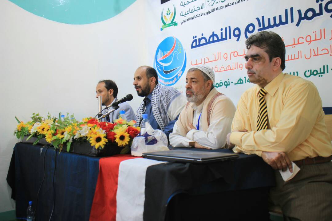 أختتم يومنا هذا الخميس الموافق 30/11/2017م أوراق عمل مؤتمر السلام والنهضة الذي نظمته مؤسسة فجر الأمل الخيرية للتنمية الاجتماعية على مدى أربعة أيام بهدف إحلال السلام وتعزيز ثقافته وتحقيق النهضة في المجتمع . أدار جلسات المؤتمر لليوم الختامي المدرب والإعلامي طلال الشرجبي رئيس اللجنة الاعلامية للمؤتمر والذي بدأت فعالياته بورقة عمل قدمها الباحث والمدرب التنموي مدير معهد المنار للتدريب والتأهيل أ/بشير العامري تحت عنوان ( التنمية تدريب وإستثمار ) حيث تطرق فيها إلى الإيمان بقوة السلم وانه يجب علينا الإيمان بقدراتنا على إدارة الصراعات وتحقيق السلم . وتطرق الى أن أهمية التدريب هو النهوض بالعنصر البشري وإعداده بالقيام بدوره بكفاءة عالية في التنمية المجتمعية المستدامة المبنية على السلام الداخلي والخارجي المحققة للنهضة الشاملة في جميع المجالات . كما قدم المدرب والباحث إبراهيم علي المسلمي- مدير المشاريع بمنظمة أجيال بلا قات ورقة عمل بعنوان ( التدريب وتأثيره على الشباب في مواجهة التحديات ) وتطرق الى أن التدريب يساعد الأفراد على إتخاذ القرارات المناسبة وقدرتهم على حل المشكلات . كما قدم د.عبدالسلام حيدر مدير عام شؤون مالية - وزارة المالية ورقة عمل تحت عنوان (دراسة في تأثير السلام على التنمية في الجمهورية اليمنية ) وكانت من أجمل الأوراق التي قدمت إلى المؤتمر حيث تطرق فيها إلى العديد من القضايا الهامة كما تتطرق إلى ضرورة العمل على إيجاد آلية تعمل على إيقاف الحرب في أسرع وقت ممكن وتبني ثقافة الحوار والقبول بالآخر كقواعد أساسية لتحقيق السلام وإلقاء الضوء على المفاهيم المتعلقو بالسلام والتنمية .وأن الأهتمام بالسلام والسعي نحوه كان دائما مطلبا إنسانيا . كما أشاد الأستاذ بليغ التميمي رئيس مؤسسة فجر الامل الخيرية بالتفاعل الإيجابي والبناء والمشاركات المتميزة والفاعلة من أعضاء المؤتمر والأوراق المقدمة كما تقدم بالشكر والتقدير الى كل المشاركين والمهتمين والمتابعين لهذا المؤتمر وتقدم بالشكر والتقدير لكل من أستجاب ولبى الدعوة وحضر المؤتمر كما ألتمس العذر لكل من دعاهم إلى هذا المؤتمر ولم يلبوا ذلك . الدكتور عبد المولى الوهباني رئيس المؤتمر تقدم بالشكر الجزيل للجنة المنظمة ولجميع المشاركين على تفاعلهم مؤكد أن المؤتمر سيختتم فعالياته بحفل تكريمي صباح الأحد القادم على قاعة جامعة السعيد. اللجنة الإعلامية