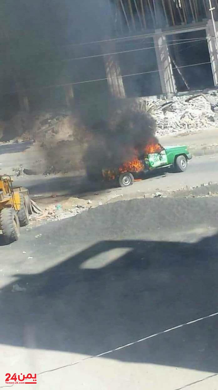 عاجل : صورة مباشرة الان من جولة بيت بوس بصنعاء .. شاهد احراق الاطقم الحوثية