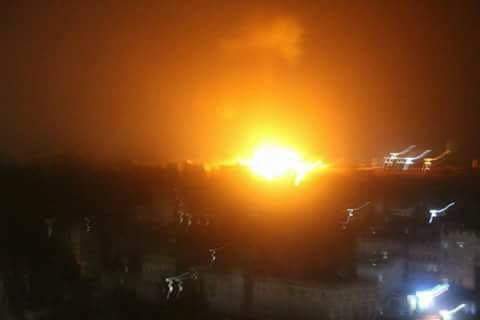 وقال سكان محليون في صنعاء ل ، ان طيران التحالف شن 5 غارات على معسكر السواد (معسكر 48) ومعسكر النهدين بدار الرئاسة، جنوب صنعاء.