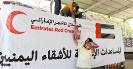 الهلال الأحمر الإماراتي يسابق قوات التحالف العربي في الخوخة بمحافظة الحديدة لإغاثة سكانها بعد دحر مليشيا الحوثي الإيرانية التى كانت تنكل وتنهب السكان