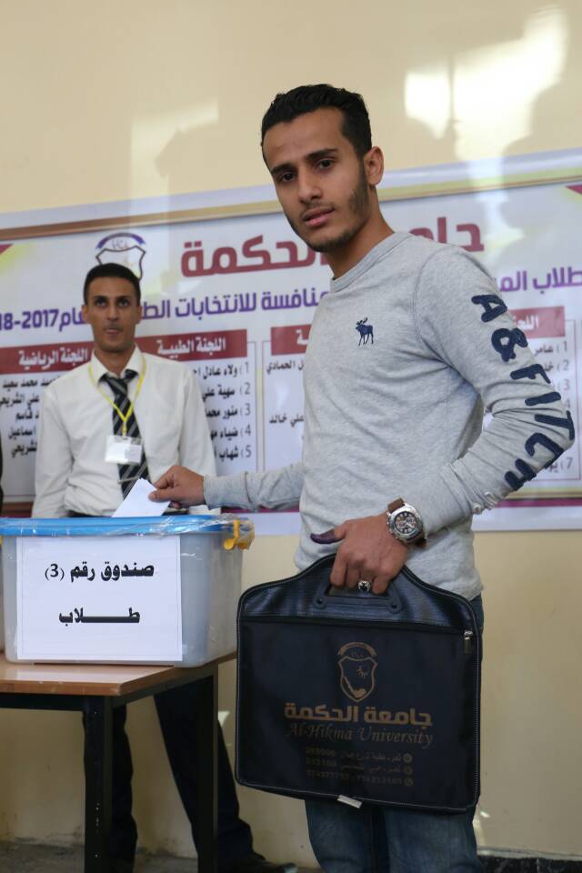 وفي تصريح لرئيس فرع جامعة الحكمة بتعز الدكتور عبده الكليبي قال ان اليوم جامعة الحكمة تقيم عرسها الديمقراطي في فرع تعز رغم ظروف الحرب والحصار ويمارسها طلابها حقهم الدستوري في انتخابات اتحاد الطلاب رغم كونها جامعة اهليه ونشيد بدور ابناءنا الطلاب كما نلفت الى الاقبال منقطع النظير وخصوصا من الطالبات .