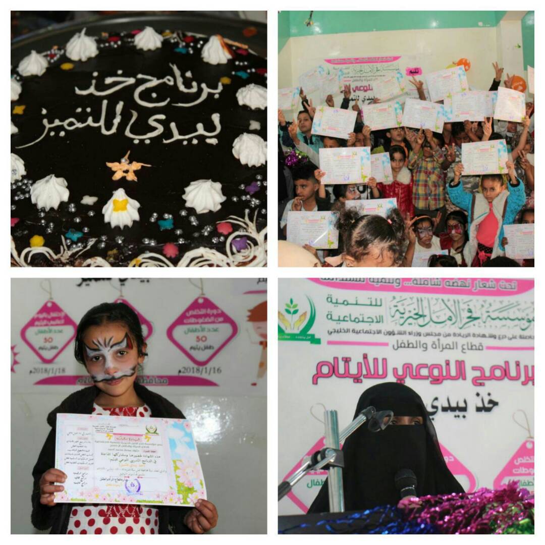 وياتي هذا الاحتفال متزامنا مع ا ختتام البرنامج التدريبي (خذ بيدي للتميز ) لعدد 50 يتيم
