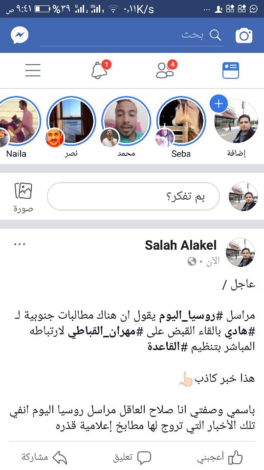 نفى مراسل قناة روسيا اليوم صحة الاخبار المنسوبة اليه والتي تزعم ان هناك مطالبات جنوبية للرئيس هادي بالقاء القبض على العميد مهران القباطي لارتباطة المباشر بتنظيم القاعدة.