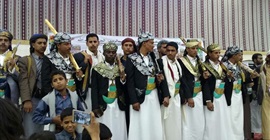 وحسب بيان، فإن العرس الجماعي الأول لكوكبة من شباب وأبناء مديرية العشة، جاء ذلك كثمرة طيبة من ثمار الملتقى الذي يهدف إلى تعزيز دور التكافل والتعاون بين جميع أبناء القبيلة.