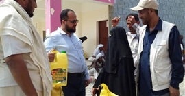 دشن مدير عام مديرية البريقة بمحافظة عدن، هاني محمد اليزيدي، توزيع المساعدات الغذائية للأسر النازحة من أقليم تهامة المتواجدين في المديرية الواقعة غرب عدن .وخلال عملية التوزيع الذي تنفذه مؤسسة تهامة للتنمية، بالتنسيق مع مبادرة شباب الخير، وبدعم من فاعل خير، أكد اليزيدي على أهمية توزيع تلك المساعدات الغذائية في توفير الإحتياجات الضرورية لتلك الأسر والتخفيف من معاناتهم المعيشية، بعد أن تركوا منازلهم ونزحوا بفعل الحرب الذي شنتها مليشيات الحوثي الإنقلابية على مناطقهم .